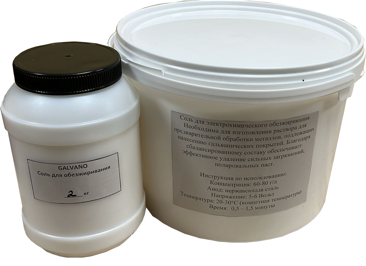 Порошок предназначен для приготовления раствора электрохимического обезжиривания изделий перед гальваническим покрытием.